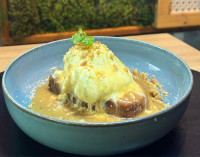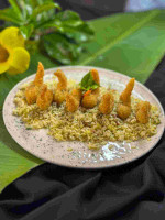 Uma explosão de sabor! Camarão empanado e crocante, recheado com um cremoso cream cheese, acompanhado de um arroz molhadinho preparado com tomate confit, trazendo um equilíbrio perfeito entre textura e sabor.