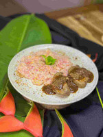 Delicioso Tartare de carne do sol, sua receita compõe uma pitada de coentro, cebola roxa, picles, maionese cítrica, mostarda e mel e temperos secretos e carne do sol desfiada.