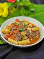 Massa rigatoni com delicioso molho de costela, tomate e especiarias.