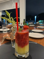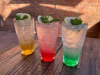 Vodka 50ml | Gelo | Xarope | Frutas: Limão, morango, abacaxi, caju e limão siciliano.