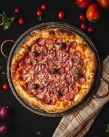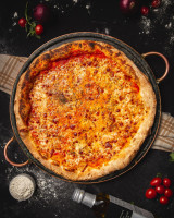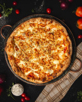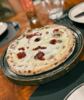 Massa de fermentação lenta, queijo mussarela, molho de tomate feito com tomate pelado e queijo gorgonzola, parmesão, catupiry e alecrim.
