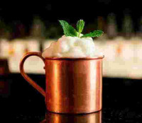 Vodka 50ml | Xarope de gengibre | Sumo de limão | Gelo | Espuma de gengibre caseira.