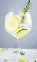 Gin 50ml | Sumo de limão siciliano | Fatias de limão siciliano | Tônica | Energético tropical | Hortelã.