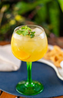 Cachaça ouro 50ml | Caju | Xarope de gengibre | Folhas de manjericão | Limão siciliano.