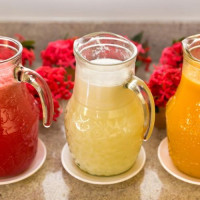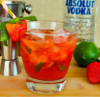 Vodka 50ml | Gelo | Açucar | Frutas: Limão, morango, abacaxi, caju e limão siciliano.