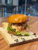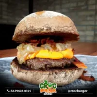Pão Brioche Salada(alface e tomate) Delicioso Hambúrguer de costela 150g Cebola marinada à moda da casa Bacon do chefe E nosso cremoso creme parmesão