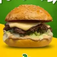 Hambúrguer de 100g, queijo prato duplo no pão brioche, acompanha batata frita smile e um suco natural