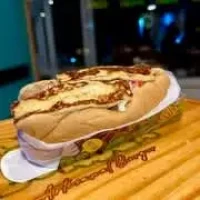 Pão de passaporte, carne moída, 2 salsichas, maionese caseira, queijo parmesão ralado, vinagrete de tomate