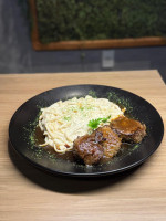 Escalopinho de filé ao molho de gorgonzola com talharim caseiro.
